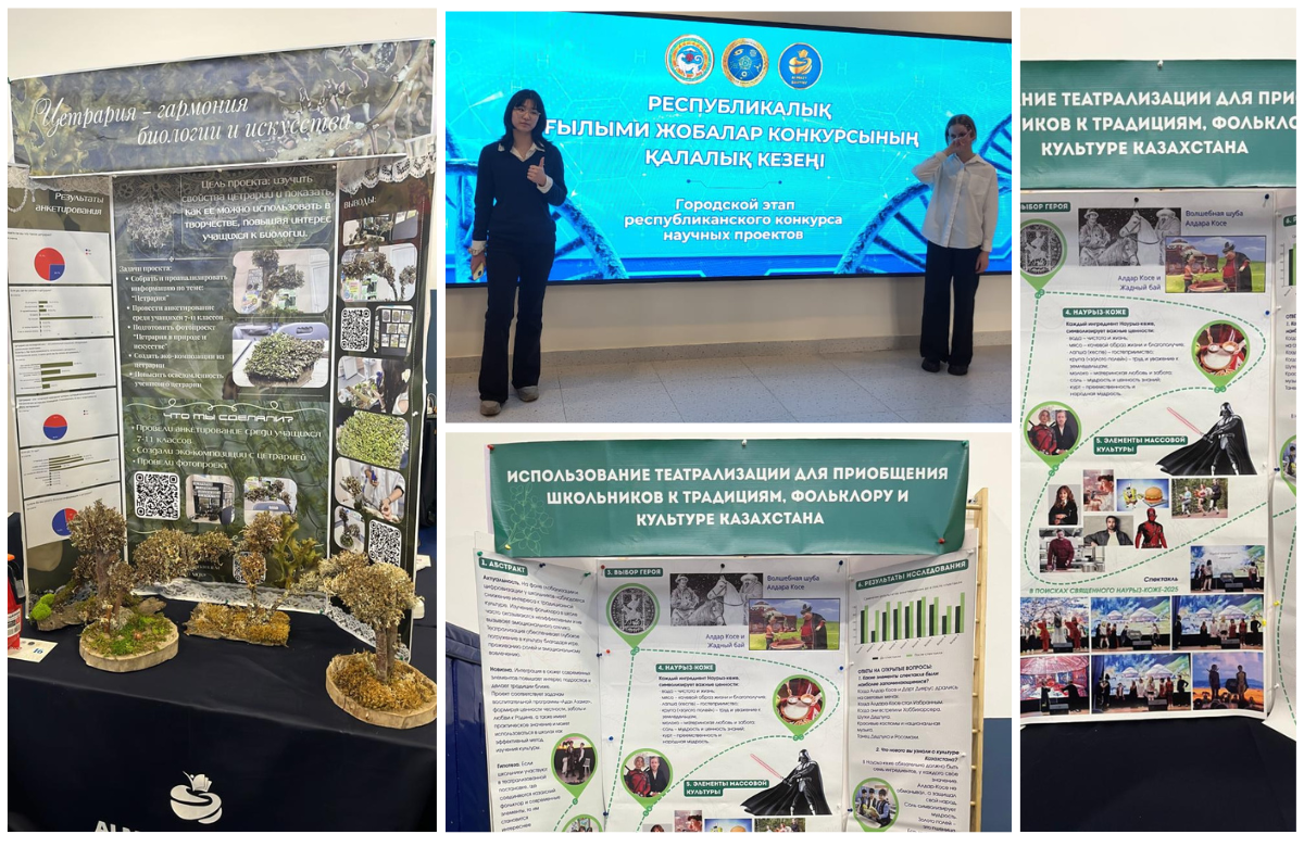 2025 жылғы 13–14 желтоқсан күндері «Тұран Лицейі» мектебінің оқушылары Алматы қаласы Білім басқармасының «Алматы дарыны» орталығы ұйымдастырған жалпы білім беретін пәндер бойынша ғылыми жобалар республикалық байқауының қалалық кезеңіне қатысты. Байқауға әртүрлі секцияларда өз ғылыми жобаларын ұсынған 400-ден астам оқушы қатысты. «Тұран Лицейі» мектебінің атынан байқауға 10 «А» сынып оқушысы Морозова Карина «Биология» секциясында, сондай-ақ 8 «А» сынып оқушысы Байбуз Елизавета мен 8 «Б» сынып оқушысы Карабек Мерейли «Этномәдениеттану» секциясында лайықты өнер көрсетті. Байбуз Елизавета мен Карабек Мерейлидің мектеп оқушыларын Қазақстанның дәстүрлері, фольклоры мен мәдениетіне тартуда театрландыруды қолдану тақырыбындағы жобасы қазылар алқасының жоғары бағасына ие болды. Байқау қорытындысы бойынша қатысушылар III орынды иеленіп, қалалық кезеңнің жүлдегерлері атанды. Оқушыларымызды лайықты нәтижелерімен шын жүректен құттықтаймыз және олардың жетістіктерін мақтан тұтамыз. Алдағы уақытта толағай табыстарға, жаңа ғылыми жаңалықтарға және өз күштеріне деген сенім тілейміз.