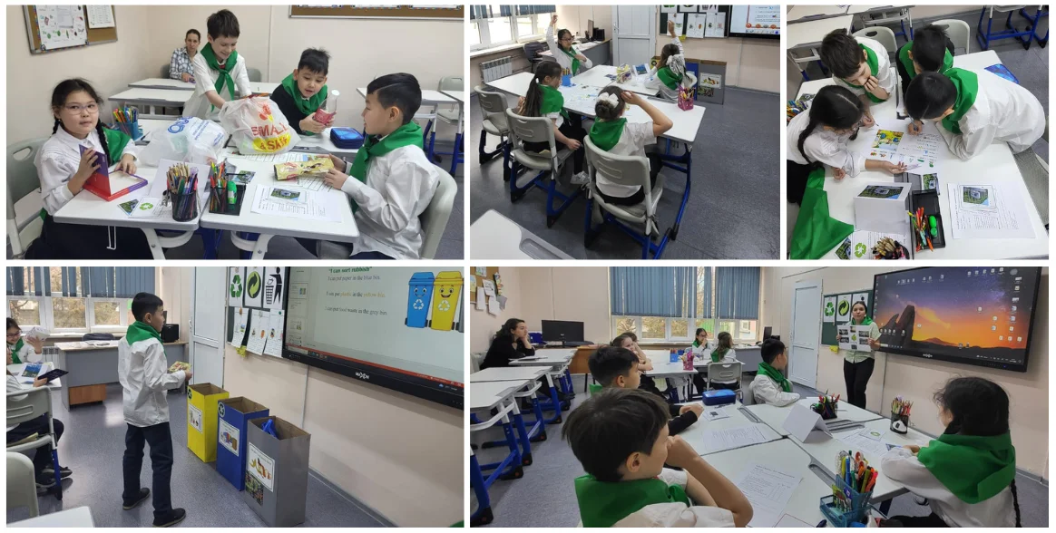 Особое внимание уделялось развитию речи и фонетике. Ребята выполняли речевую разминку с ритмическим повторением фраз и фонетические упражнения с игровыми образами. Интерес вызвало видео о городе Алматы с использованием искусственного интеллекта, которое позволило учащимся самостоятельно выделить ключевое слово «can» и сформулировать тему урока. Групповая работа в командах Medeu и Kok Tobe развивала командный дух, а элементы соревнования поддерживали мотивацию на протяжении всего занятия. Урок носил экологическую направленность: дети расширили словарный запас (recycle, plant, save, protect, pollute), учились строить предложения с модальным глаголом can и активно использовали конструкцию «I can…». Практические задания, такие как сортировка мусора и игра «Eco or Not?», способствовали формированию экологической культуры.