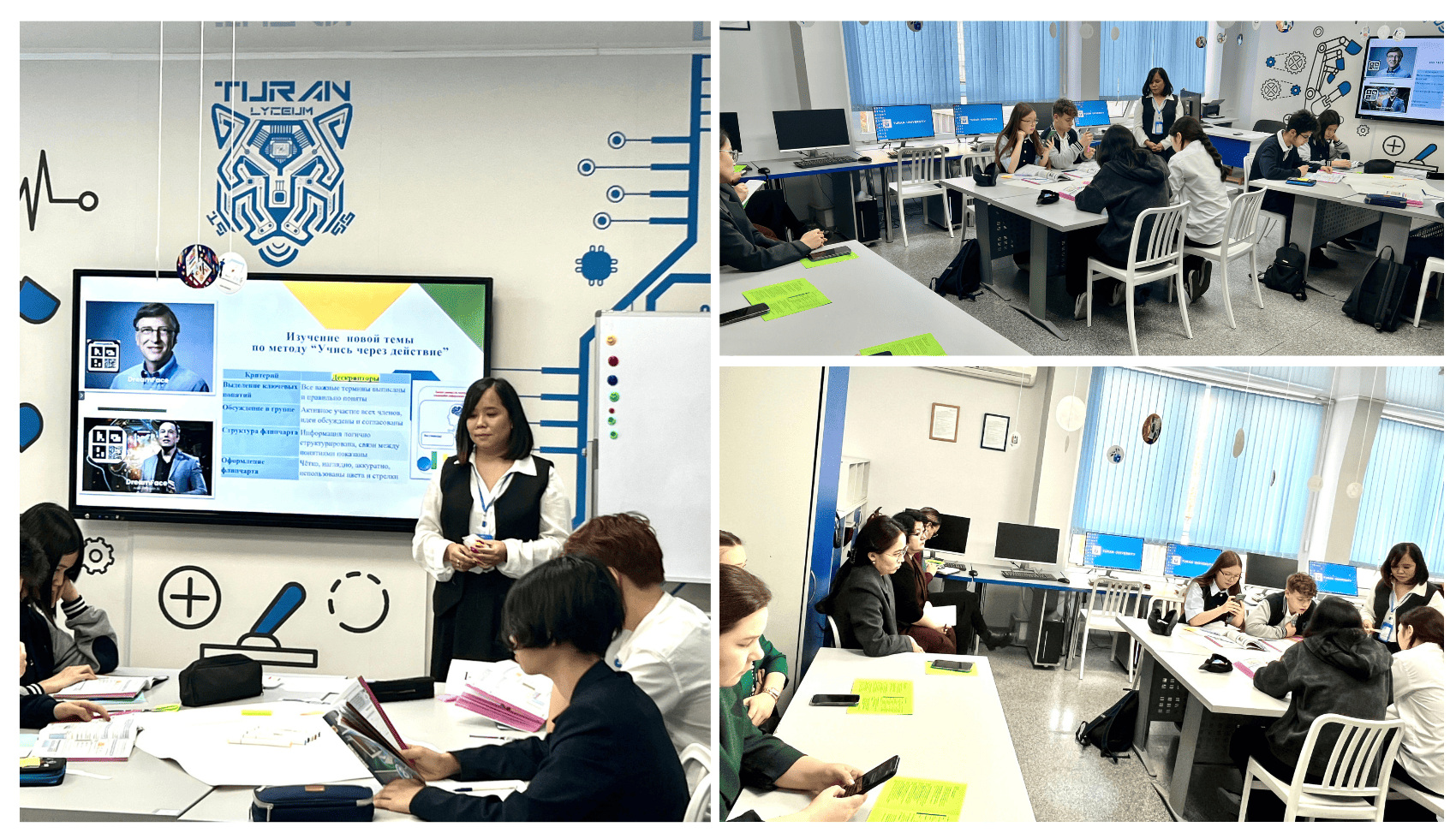 5 декабря 2025 года в школе «Лицей «Туран» прошёл городской научно-методический семинар для учителей естественно-математического цикла на тему: «Развитие функциональной грамотности и критического мышления как условие повышения учебных достижений на уроках ЕМЦ». В рамках семинара учитель информатики Саттыбаева Л. И. провела открытый урок с использованием современных методов обучения: критического мышления, элементов искусственного интеллекта, диалогового и группового обучения, а также практико-ориентированных заданий. Занятие началось с интерактивного задания со стикерами, после чего учащиеся распределились по группам. На этапе актуализации знаний они повторили виды встроенных функций и определили тему урока, опираясь на наглядные материалы в кабинете. Каждая группа исследовала часть темы «Анализ данных на основе имеющейся информации» и представила результаты в виде презентаций и флипчарта. В практической работе школьники заносили данные об озёрах Казахстана в электронную таблицу, применяли встроенные функции и формулировали выводы. Урок завершился рефлексией и оцениванием. Участники семинара отметили высокую активность учащихся, современный подход к организации занятия и практическую направленность заданий. Открытый урок стал важной площадкой для обмена опытом и демонстрации эффективных образовательных методик.