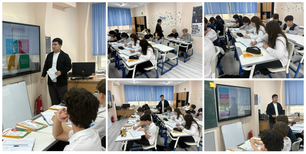 19 декабря 2025 года в 9 «Б» классе школы «Лицей Туран» был проведён открытый урок по алгебре по теме «Арифметическая и геометрическая прогрессии в жизни», который провела учитель математики Айдан Б.Н. Тема занятия была выбрана в рамках темы самообразования педагога «Формирование метапредметных компетенций у учащихся на уроках математики через развитие функциональной грамотности».
