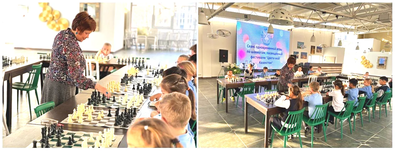 21 ноября в Конгресс-холле прошел сеанс одновременной игры по шахматам в рамках фестиваля «Цвети, мой Казахстан». В мероприятии приняли участие учащиеся начальной школы. Ребята продемонстрировали высокий интерес к интеллектуальному спорту и стремление развивать навыки стратегического мышления. Сеанс провела тренер по шахматам Крюкова Алла Валерьевна. Она поделилась с участниками игровым опытом, поддерживала их во время партии и создала дружескую и увлекательную атмосферу соревнования. Мероприятие стало ярким событием фестиваля. Оно объединило юных шахматистов и показало важность интеллектуальных и творческих инициатив для подрастающего поколения. Участники получили ценный игровой опыт и мотивацию для дальнейших занятий шахматами.