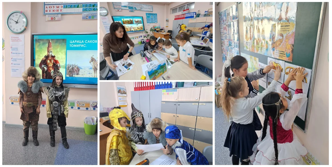 В 1”А” классе школы «Лицей Туран» прошёл познавательный урок на тему «Саки — наши древние предки», направленный на формирование интереса к истории Казахстана и воспитание уважения к культуре и традициям своего народа.