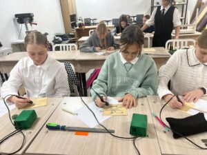 Учителя художественного труда Омарова Ляззат Сембаевна и Абдыкалыков Болат Асетович провели интересный и познавательный урок в 5 «А» классе. Занятие прошло в необычном формате, позволив учащимся попробовать себя в разных направлениях. В ходе урока мальчики осваивали основы кулинарии и занимались приготовлением блюд, а девочки знакомились с техникой выжигания по дереву, развивая творческие навыки, аккуратность и художественное мышление.
