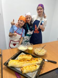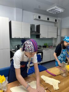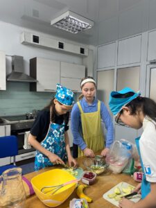 На уроках кулинарии ученицы 5-6 классов с большим интересом и вдохновением осваивают основы приготовления пищи под руководством Омаровой Ляззат Сембаевны, учителя художественного труда. Занятия проходят в тёплой и доброжелательной атмосфере, где каждая девочка чувствует себя уверенно и активно вовлечена в процесс.