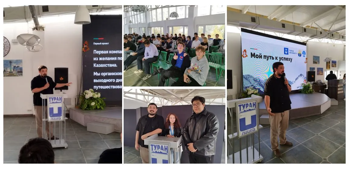 Перед учащимися также выступила Куанышева Карина, сотрудник департамента маркетинга университета «Туран». Она познакомила школьников с образовательными программами и возможностями, которые открывает обучение в университете.